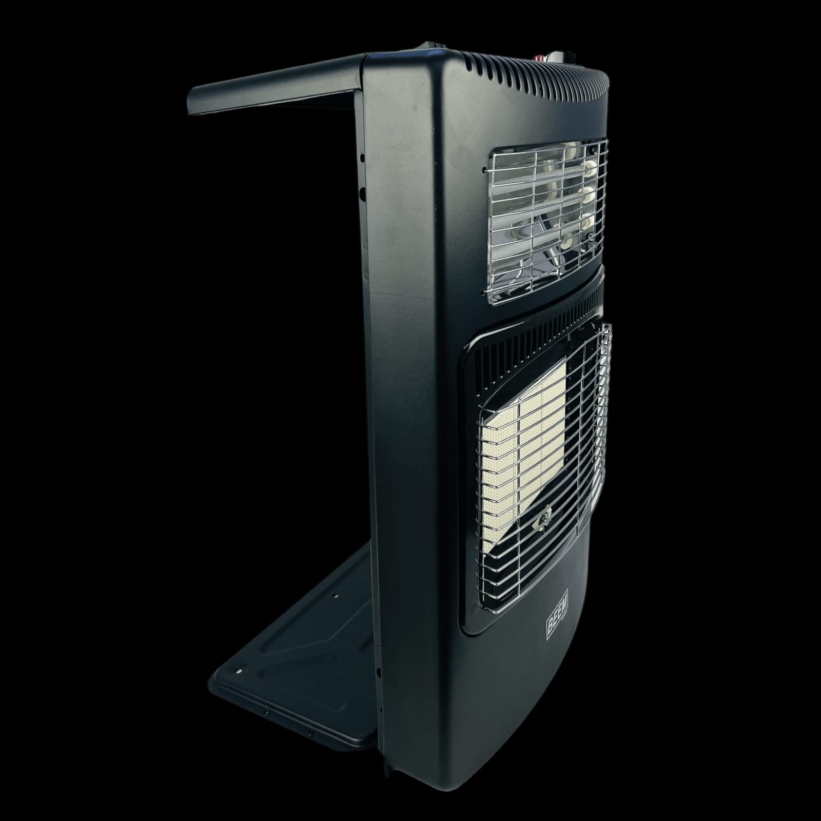 تتميز المدفأة بتقنية مزدوجة تجمع بين الغاز والكهرباء لتحقيق تدفئة فعّالة. يوفر الغاز تسخينًا سريعًا، في حين توفر الكهرباء استمرارية في توزيع الحرارة.
